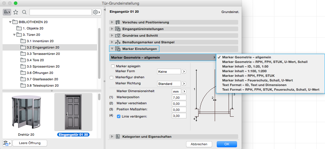 Für die grundsätzliche Verwendung des Tür-Werkzeuges verweisen wir auf die Basisdokumentation von Graphisoft im Help-Center.