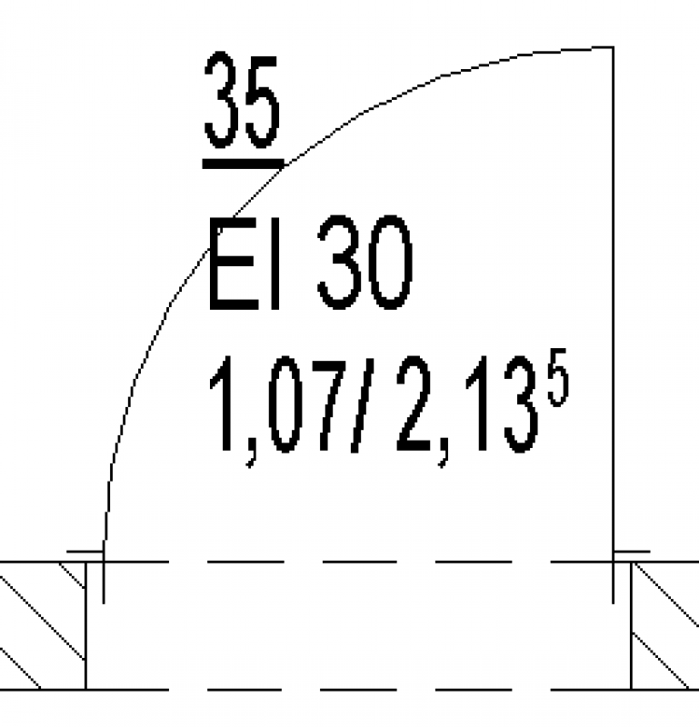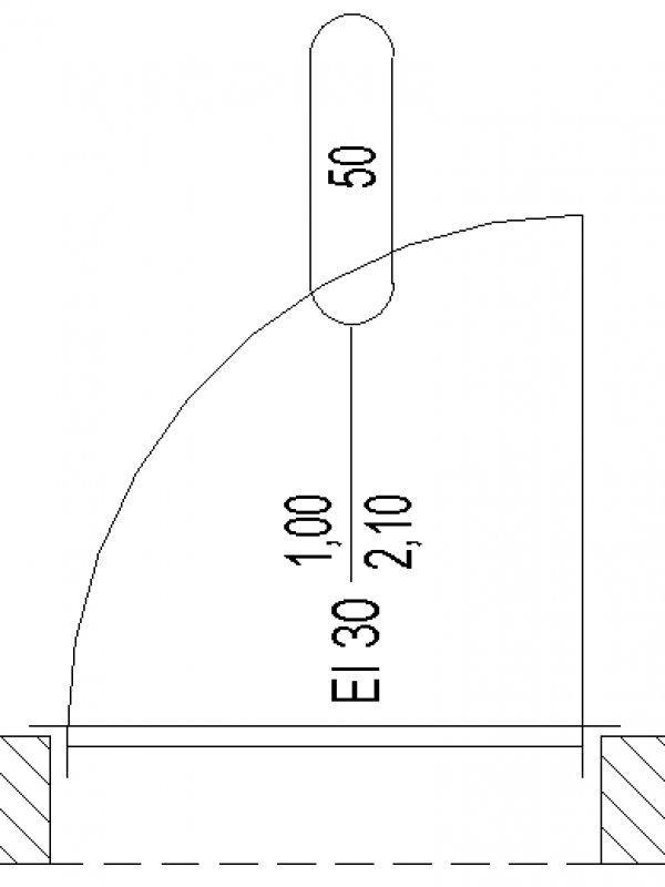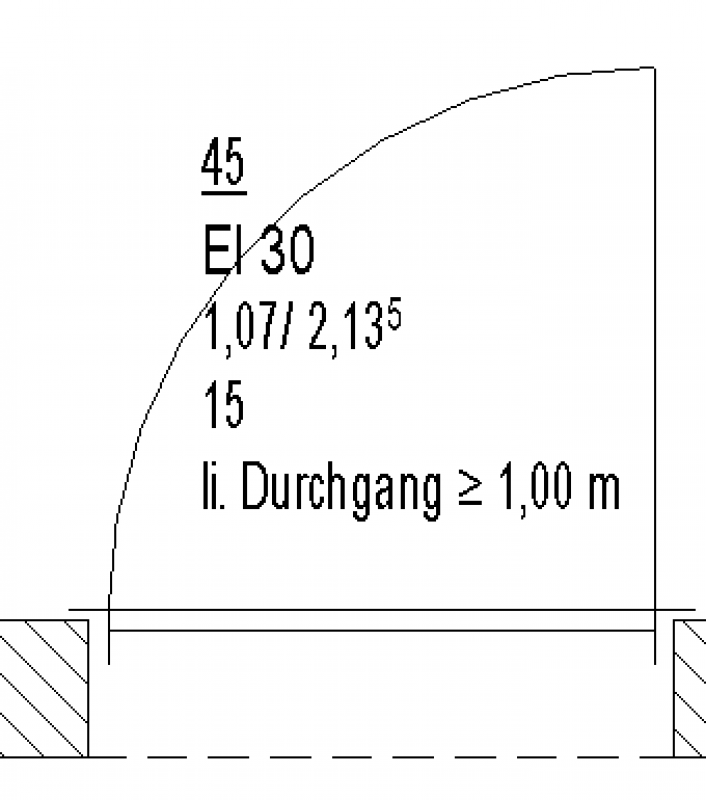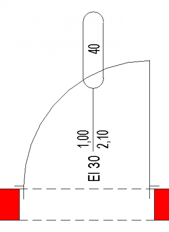 Hier wird die lichte Durchgangsbreite und Höhe, die Feuerwiderstandsklasse und die Türnummer beschriftet. siehe Plandarstellung: