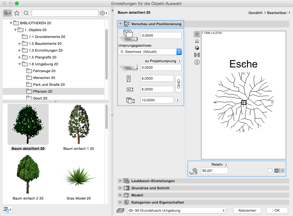 Das Pflanzen-Objekt wird zum Geschoss-Null (= OKRD) bzw. zum Gelände-Modell korrekt platziert.