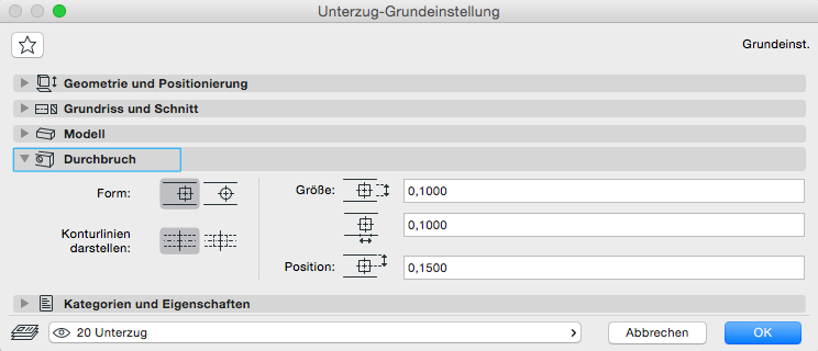Für die grundsätzliche Verwendung des Unterzug-Werkzeuges verweisen wir auf die Basisdokumentation von Graphisoft im Help-Center.