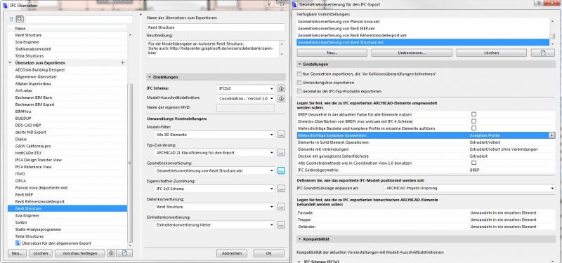 Für den Tragwerk-IFC-Export gibt es in Archicad einen speziellen Übersetzer: Revit Structure