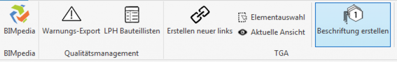Das Tool Beschriftung erstellen findet sich im Reiter BIMSolutions in der TGA-Toolbox.
