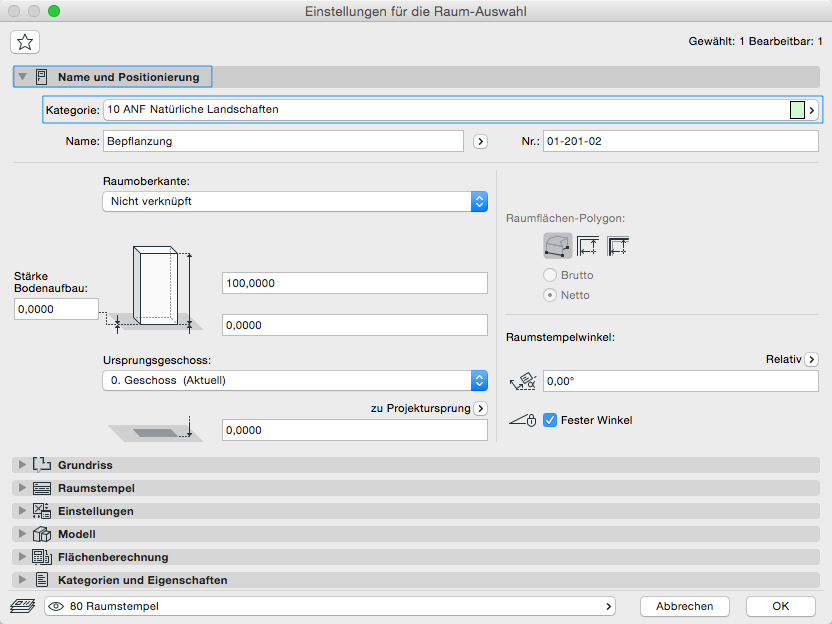 Für die grundsätzliche Verwendung des Raumflächen-Werkzeuges und der Objektbibliotheken verweisen wir auf die Basisdokumentation von Graphisoft im Help-Center.
