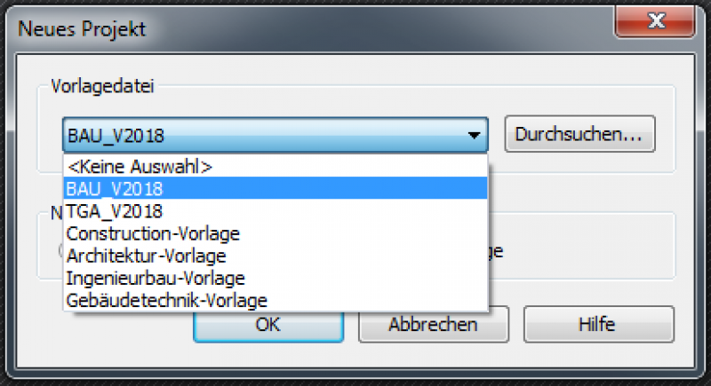 Erstellen einer neuen Revit-Datei auf Grundlage des entsprechenden Templates.