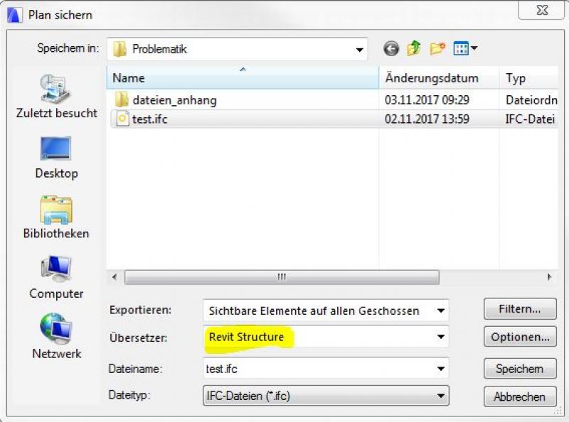 Der Übersetzer kann noch etwas angepasst werden, um den IFC-Export zu optimieren.