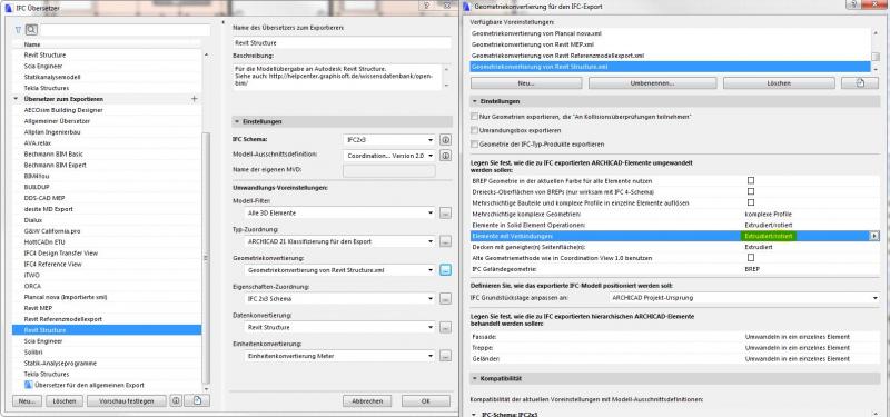 Wichtig ist die Geometrie-Konvertierung: In der Standard-Einstellung des Revit Structure Übersetzers ist Extrude ohne Verbindung eingestellt.