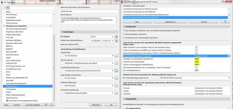 Will man einen Export für Revit, welcher 1 zu 1 gleich ist, wird es empfolen beim standard Revit Structure Übersetzer bei der Geometriekonvertierung auf BRep umzuändern.