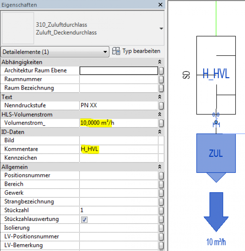- Sollte die Beschriftung nur ein „?“ produzieren, sind die Parameterwerte in den Detailelementen zu überprüfen. Es ist sicherzustellen, dass die Parameterwerte, welche die Beschriftungsfamilie ausliest, ausgefüllt sind (Bild: Beispielwerte).