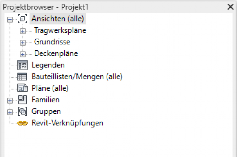Die zentrale Grundlage für eine geregelte Arbeits-Systematik in Revit ist eine sinnvolle Strukturierung des Projektbrowsers. Es geht dabei um die hierarchische Gliederung aller in einem Projekt enthaltenen Ansichten, Listen, Pläne, etc..