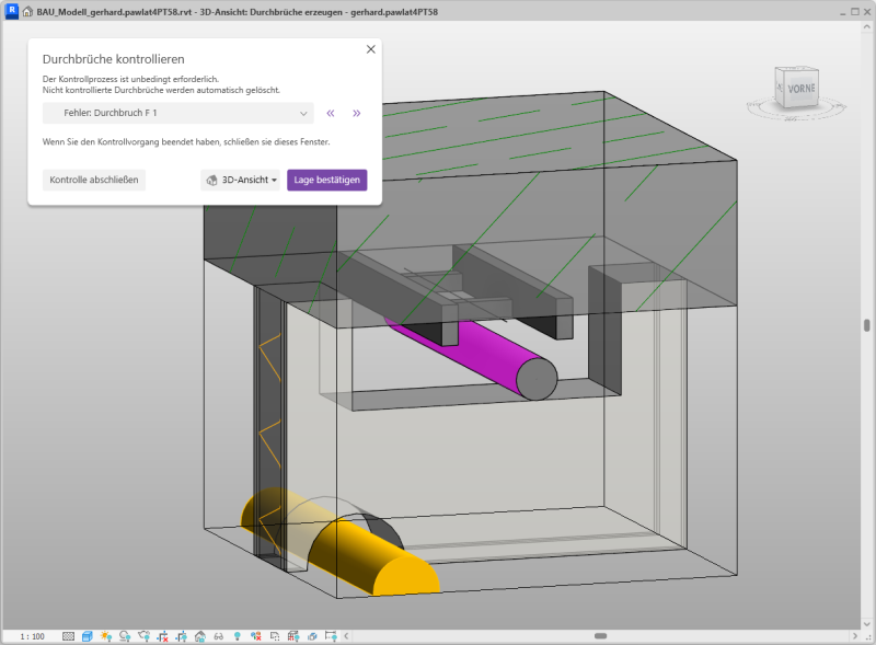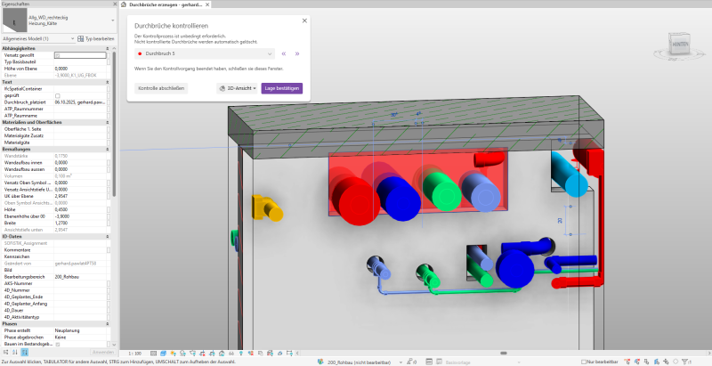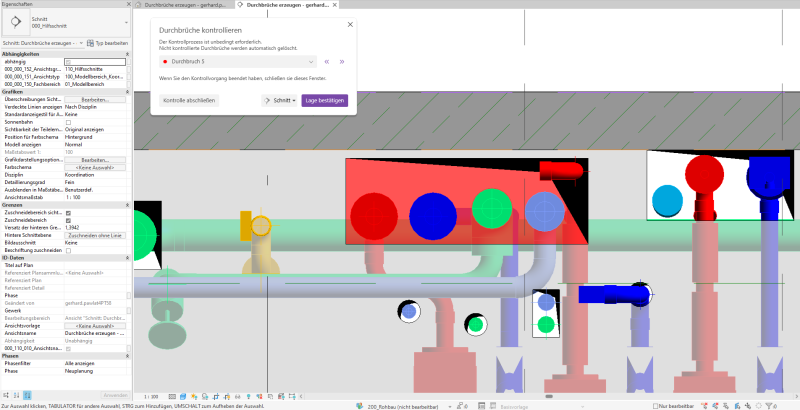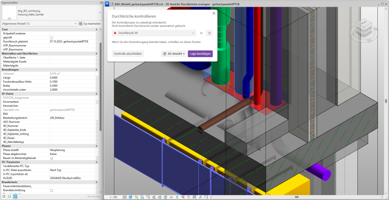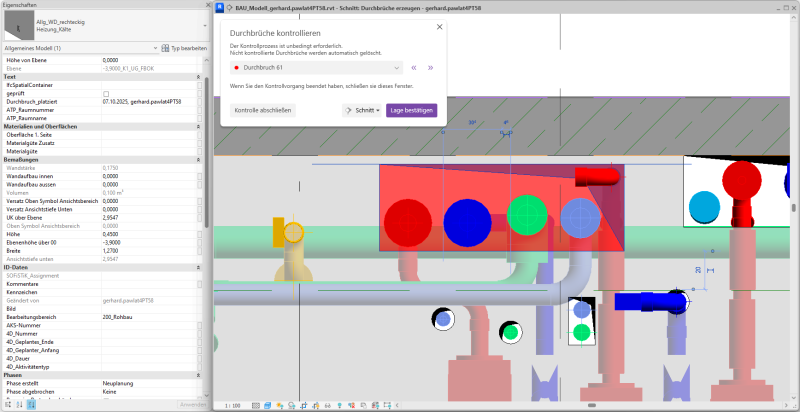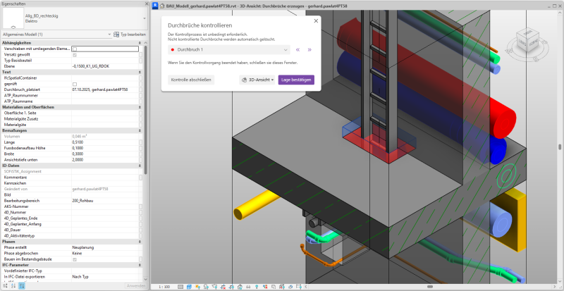- Die Kontrolle von Durchbrüchen soll ohne spezielle Kontrollansichten auch in der aktiven Ansicht ermöglicht werden. Eine Kontrolle pro Basisbauteil anstatt pro Durchbruch wird auf Machbarkeit geprüft.