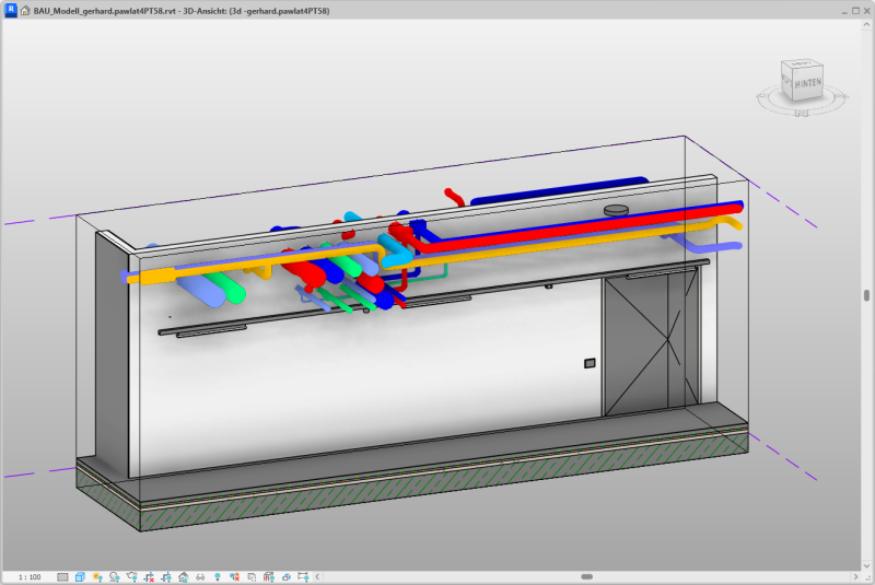 - Kollisionen von Elementen der technischen Trassenführung (Rohre, Lüftungskanäle, Kabeltrassen etc.) und baulichen Elementen (Geschoßdecken, Wände etc.) werden automatisch erkannt.