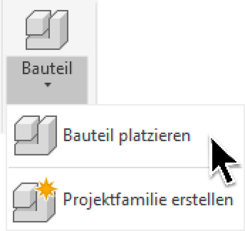 Platzieren wir nun einen Wanddurchbruch in einem Grundriss mit der Revit-Funktion 'Bauteil Platzieren'.