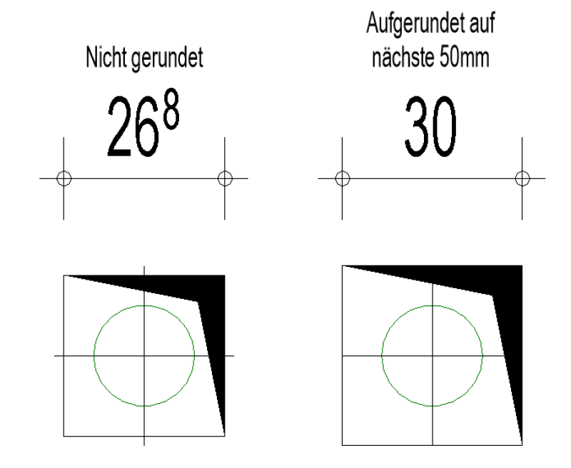 Folgendes Beispiel zeigt Rundung laut Rundungsfaktor 50mm.