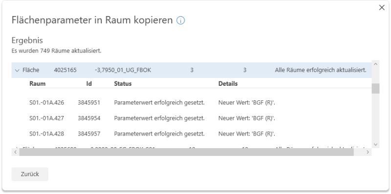 Diese Revit-Erweiterung überträgt Parameterwerte von Flächen in alle Räume die sich innerhalb dieser Flächen befinden.