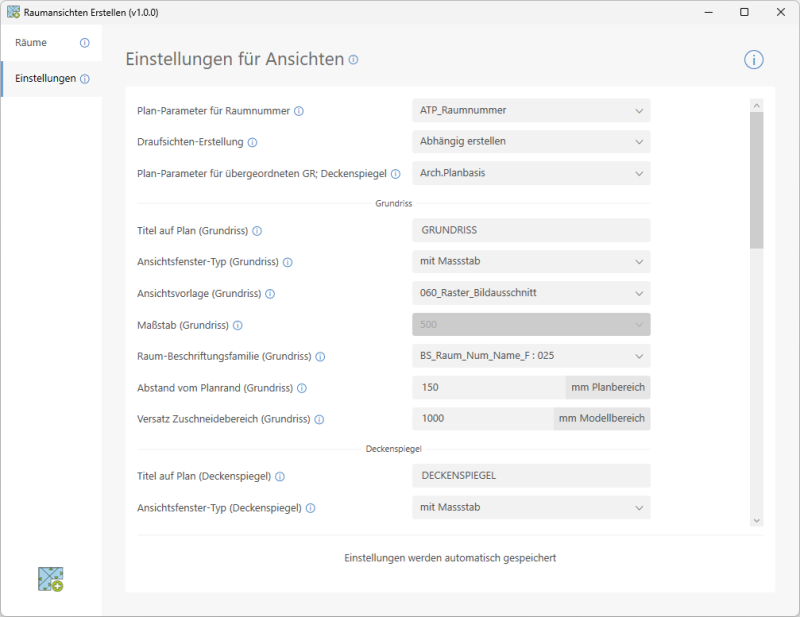 - Automatisches Erzeugen aller benötigten Raumansichten